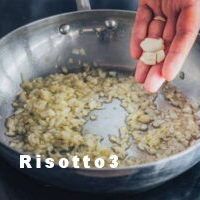 .La base : Sauté : Chaque risotto commence par un soffritto, généralement composé d'oignons finement hachés cuits doucement dans du beurre ou de l'huile d'olive. Les oignons doivent devenir translucides sans brunir.